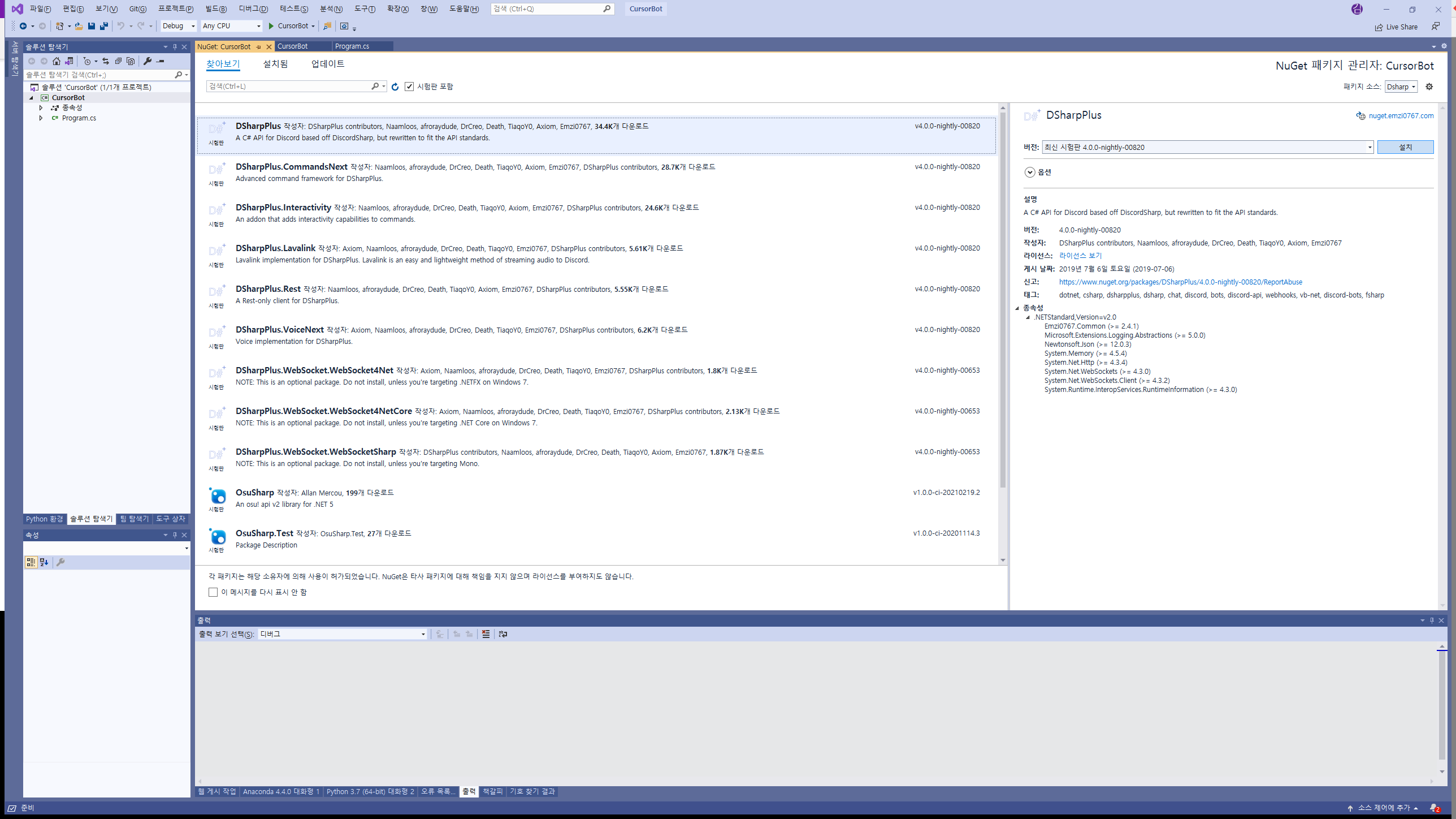 DSharp이라고 부르는 저 라이브러리는 NuGet 패키지에 올라와 있으므로 설치를 할 것입니다.