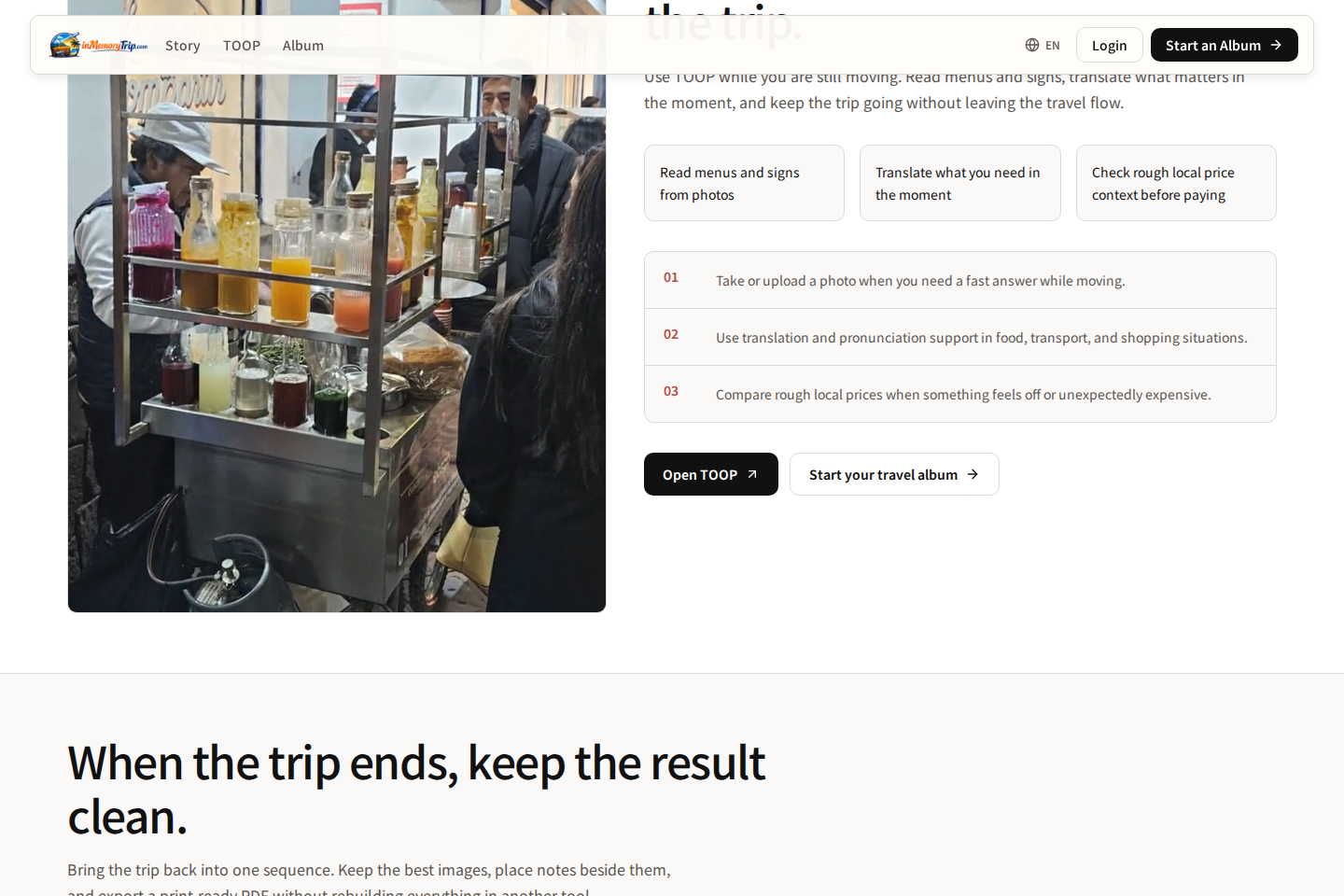 InMemoryTrip 공개 소개 기준으로 보면 정리 동선은 대체로 아래 순서로 맞춰집니다.